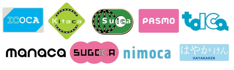 PASMO(パスモ)/ manaca(マナカ)/ nimoca(ニモカ)/SUGOCA(スゴカ)/はやかけん