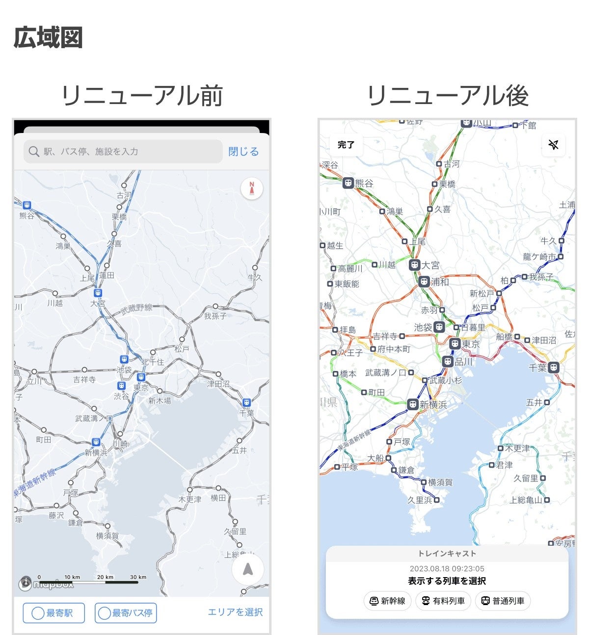 ヤフー株式会社(以下、Yahoo! JAPAN)が提供する無料で利用できる乗換検索アプリ「Yahoo!乗換案内」(iOS版)は本日、「路線図」を「公共交通マップ」としてリニューアルします。「公共交通マップ」では、地図デザインの視認性を向上させ、サービス提供開始から15周年を記念し、全国で運行している約700路線(※1)を走る列車の動きを、列車のアイコンで地図上から確認できる「トレインキャスト」機能(以下、本機能)を新たに提供します。