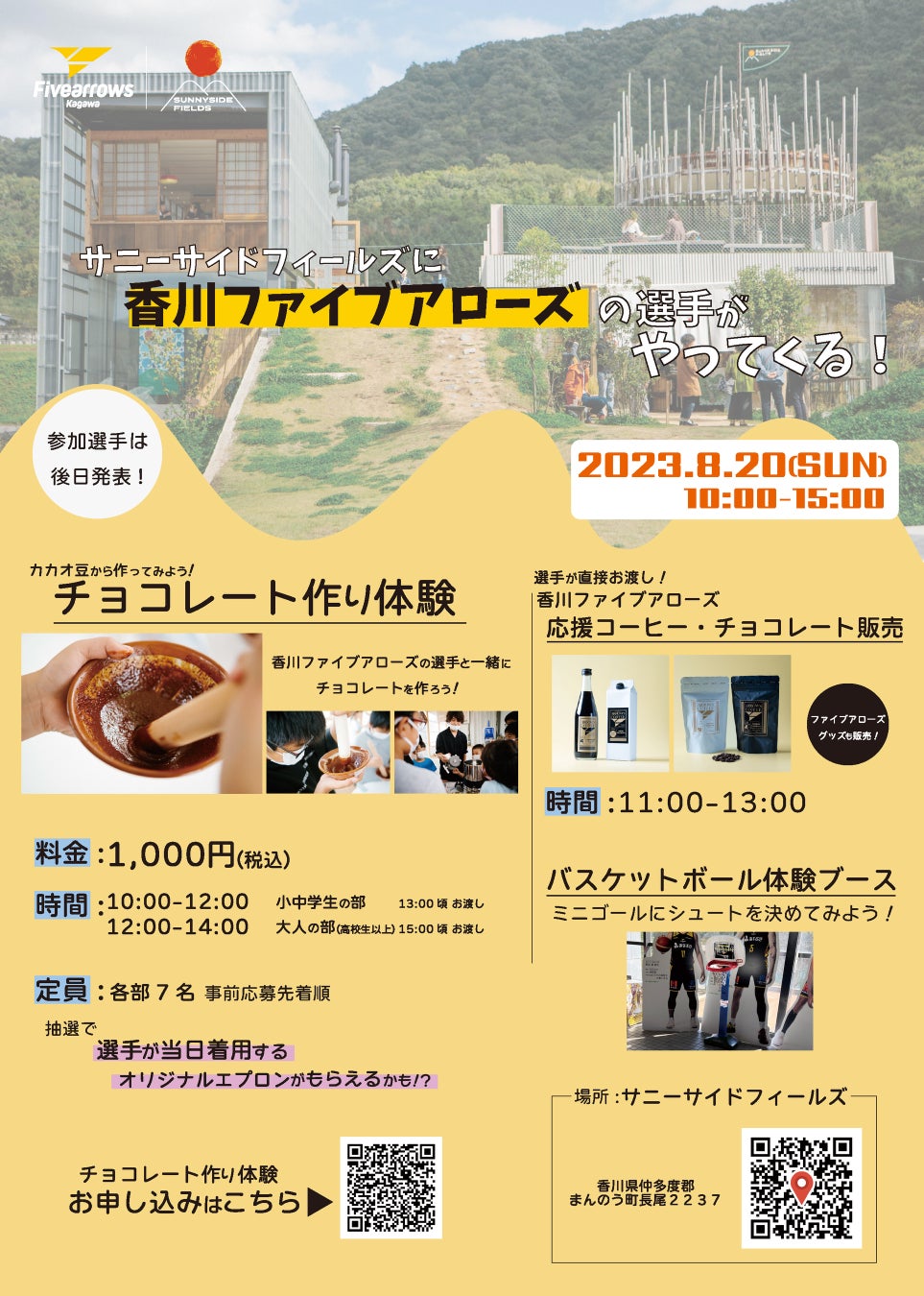 【香川ファイブアローズ】8/20(日) チョコ作り体験!サニーサイドフィールズコラボイベント開催のお知らせ