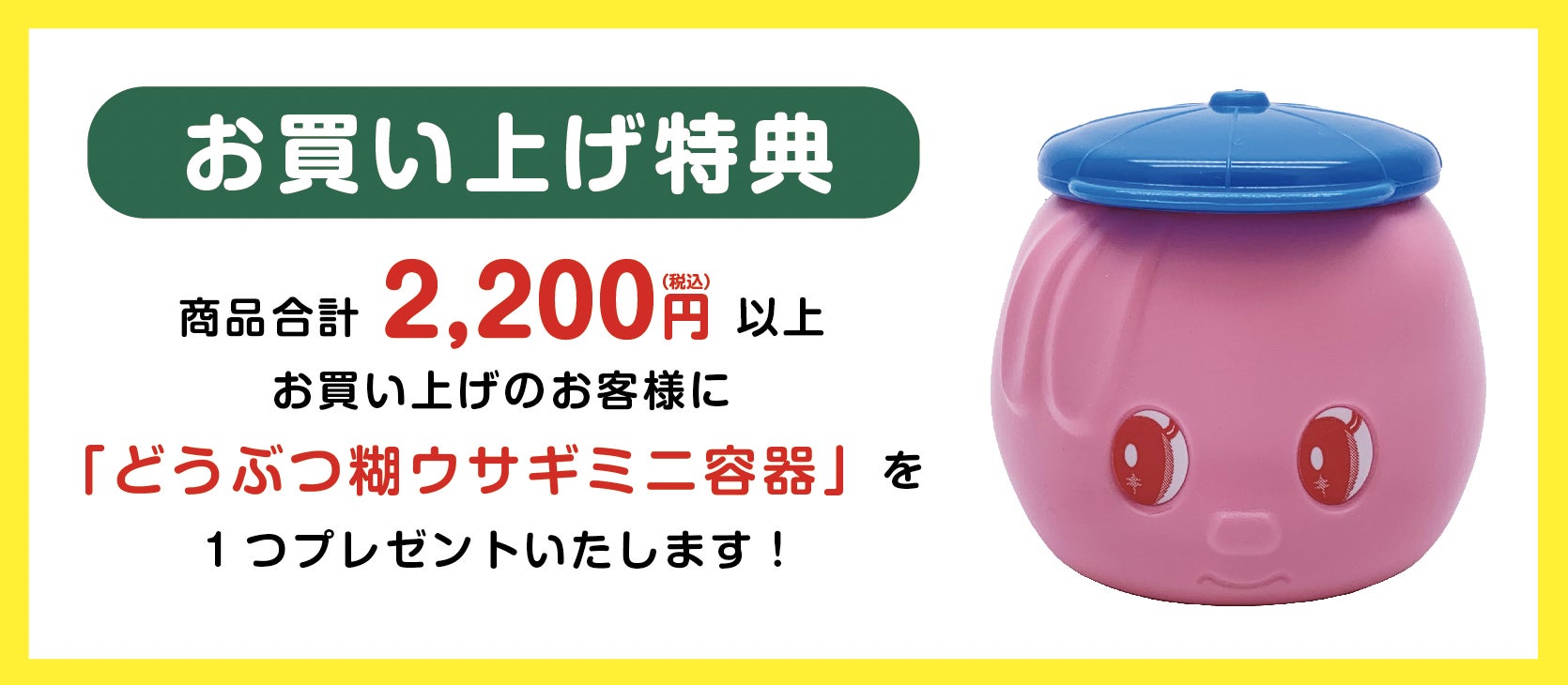 期間中、ショップ内でへそ文関連商品を2,200円(税込)以上お買い上げのお客様に「どうぶつ糊ウサギミニ容器」を1つプレゼントいたします!