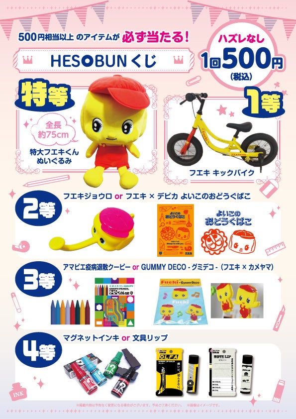 毎回大人気の抽選会「へそ文くじ」(1回/税込500円)も開催!