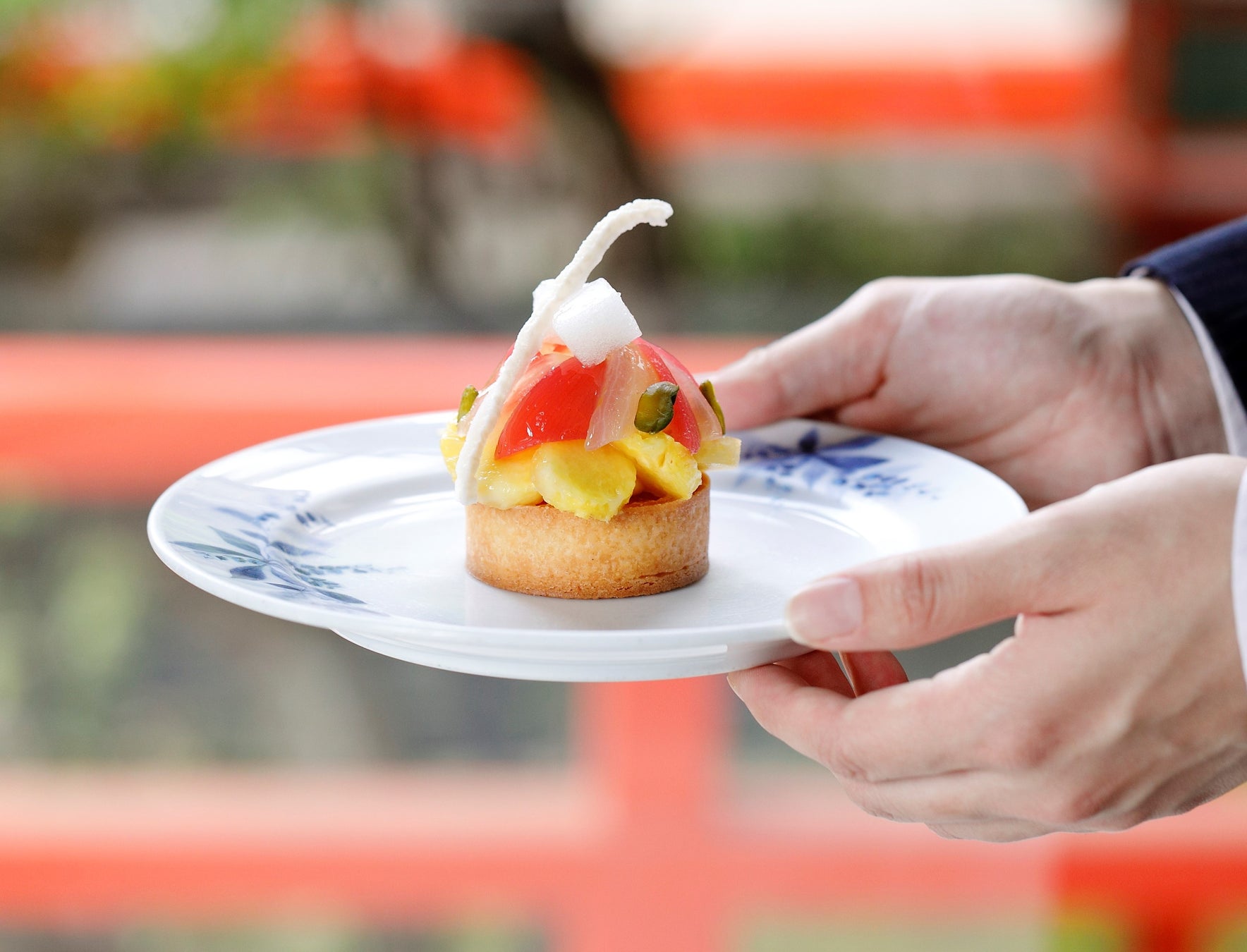 奈良ホテルでご提供する「淡路島産玉葱のタルト」は、甘みが強く、水分豊富で柔らかいといった淡路島産の玉葱の特徴を最大限に生かした、新感覚スイーツです。