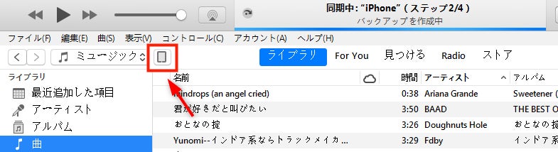 Step1:お使いのiPadをコンピュータに接続するために、iPad用のUSBケーブルを使用します。次に、左上にあるiPhoneアイコンをクリックします。