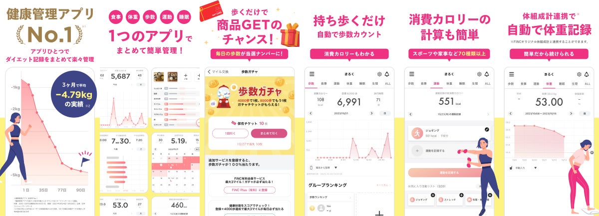 特典:GW限定プログラム「おさんぽクエスト」では、全てのアクションを達成した方の中から抽選で1,000名様にFiNCマイル(50マイル)が当たります。FiNCマイルは集めるとデジタルギフト等の豪華商品と交換できます。