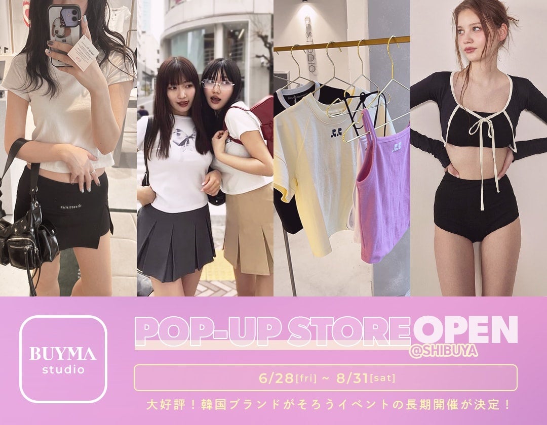 韓国ブランドだけでなく、BUYMAでZ世代に人気の夏アイテムをそろえて、2ヶ月間オープンいたします。店頭限定のお得なクーポンも配布予定です。ご試着だけでもぜひお気軽にお立ち寄りください。