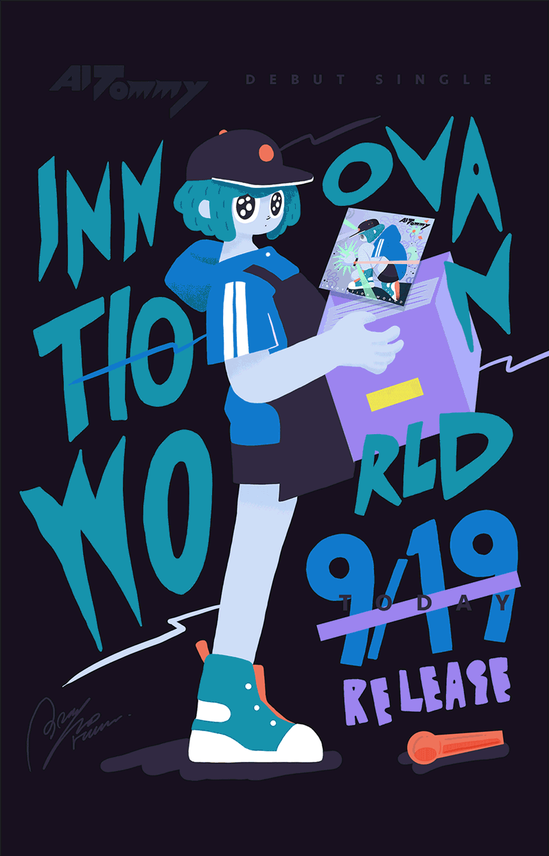 アーティスト名は「AI Tommy」で、楽曲名はずばり「INNOVATION WORLD」です。詞はTommy自身が世界の名作小説をラーニング(学習)し、INNOVATIONをテーマに作詞しました。AIが作った歌詞なので、意味自体は不明なところもありますが、ぜひサブスクリプションサービスの歌詞表示サービスを使って中身を確認してみてください。作曲家の浅田祐介さんによる、とてもポップで爽やかなチューンに仕上がりました。