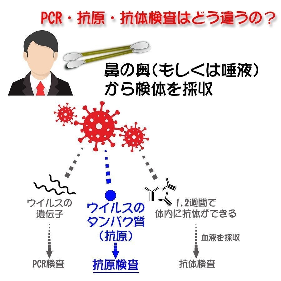 オミクロン株の増加に伴い、今回新しいタイプになった「抗原検査キット」のほうを販売開始致しますので、万が一の場合に備えて各団体、企業様のサポートになればと思っております。