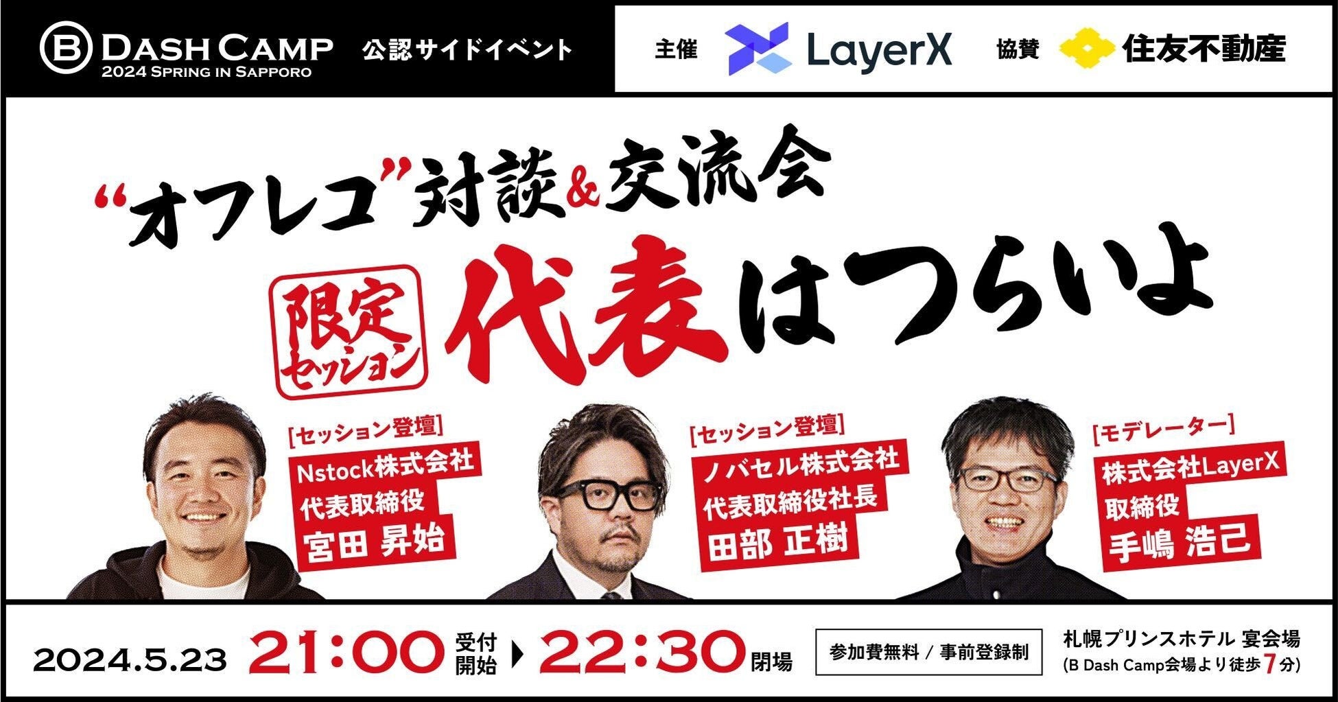 B Dash Campは、国内外のインターネット業界のキーパーソンとスタートアップが参加する招待制イベントです。この度のB Dash Camp 2024 Spring in Sapporoは、2024年5月22日から24日まで札幌市内で開催され、バクラク(LayerX)はシルバースポンサーとしての出展および公認サイドイベントを主催します。