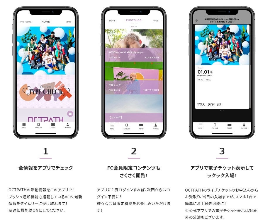 2022年7月20日から開催される、「OCTPATH 2nd FANMEETING THme Vacation」の【OCTPATH OFFICIAL FANCLUB会員先行】で販売したチケットは、「OCTPATHオフィシャルアプリ」にて発券いたします。
