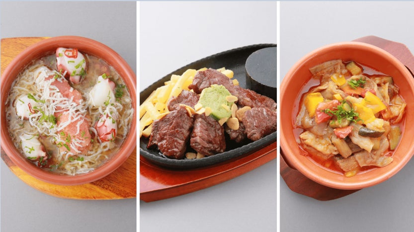 『蛸とシラスの明太アヒージョ』は、食べ応えのあるサイズに大きくカットされた自慢の蛸、シラス、明太子をたっぷり使用し、贅沢なアヒージョに仕上げました。『国産牛の鉄板サーロインステーキ』は、肉を知り尽くした職人がカウンターキッチンで丁寧に焼き上げ、食べやすくカットしてご提供いたします。