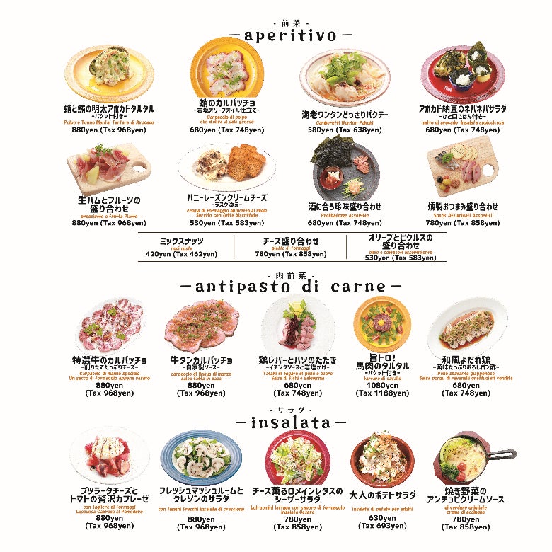 『大衆ビストロコタロー』のディナーメニューは、小皿料理から自慢の肉料理、自家製デザートまで40種以上の豊富なメニューをご用意。