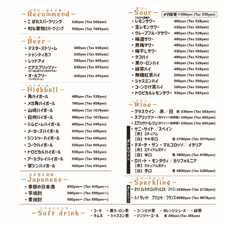 - ドリンクメニュー