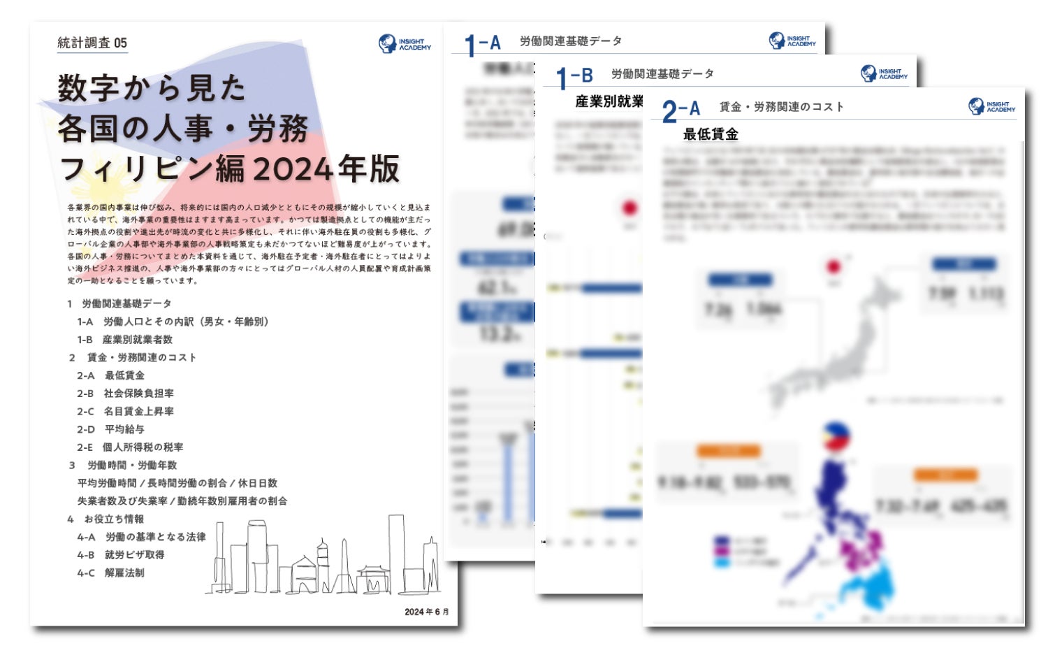 グローバル⼈材育成・研修業を⼿掛けるインサイトアカデミー株式会社(本社:東京都港区新橋、代表:金 珍燮)は、フィリピンの人事・労務について、様々な角度からデータを集めた2024年版の資料を無料公開しました。