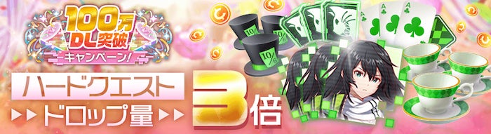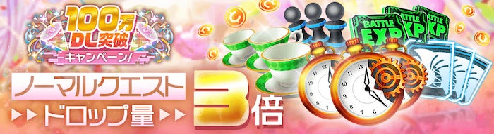 ・100万DL突破記念!クエストドロップ量が3倍になるボーナスを実施中!