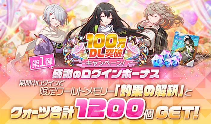 ・100万DL突破記念!感謝のログインボーナス第1弾を開催中!