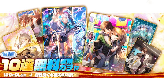 ・100万DL突破記念!1日1回10連無料ガチャ&1日1回10連無料WMガチャを開催!