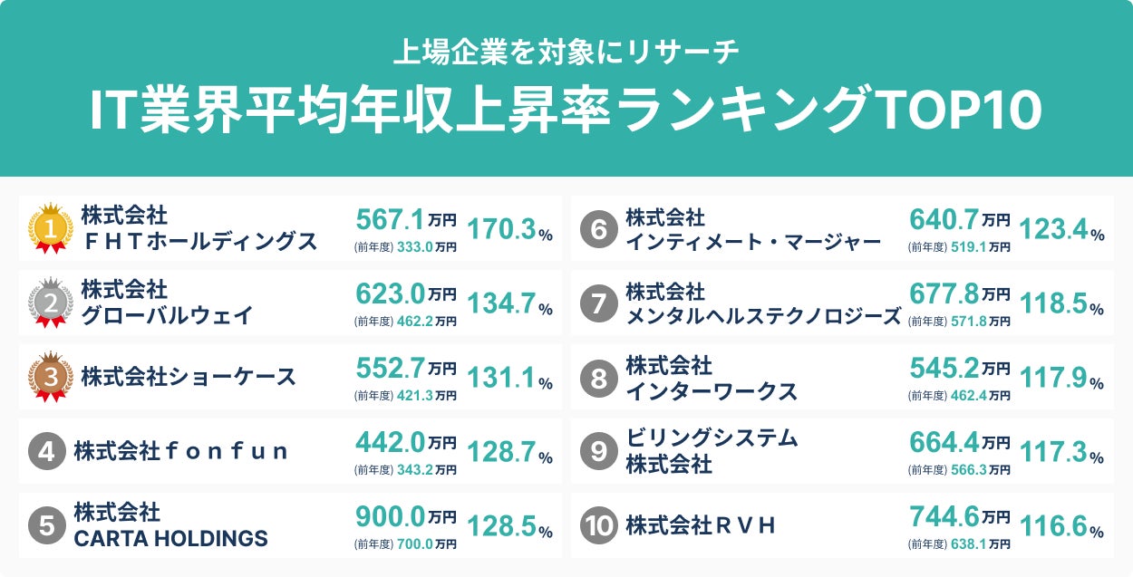 IT業界、平均年収上昇率ランキングTOP10を発表!/SalesNow DBレポート