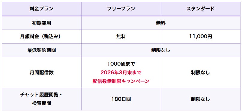 エルグラムでは、フリープランの月間配信数を通常1,000通までとしていますが、多くのユーザーからのご要望を受け、リリース時より実施していた「配信数無制限キャンペーン」をさらに3カ月延長し、2026年3月31日まで継続いたします。