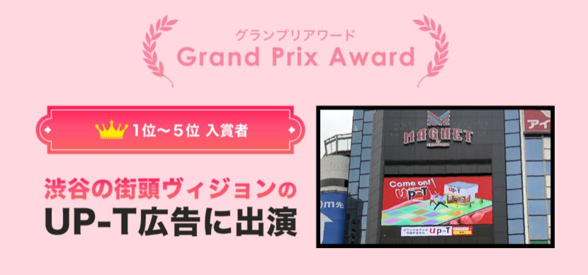 全国から美少女図鑑モデル&人気ライバーが集結する大人気イベント「超チェキフェス」とUP-Tのコラボレーション企画が開催します。超チェキフェス参加の人気モデルの方々がTシャツをデザインして販売枚数と応援ツイート数の数でガチンコバトル!ランキングの上位入賞者には渋谷の街頭ヴィジョンに出演できるという豪華な賞品をご用意しています。あなたの応援で推しを渋谷のヴィジョンに出演させて未来のスターの活躍を後押ししよう!