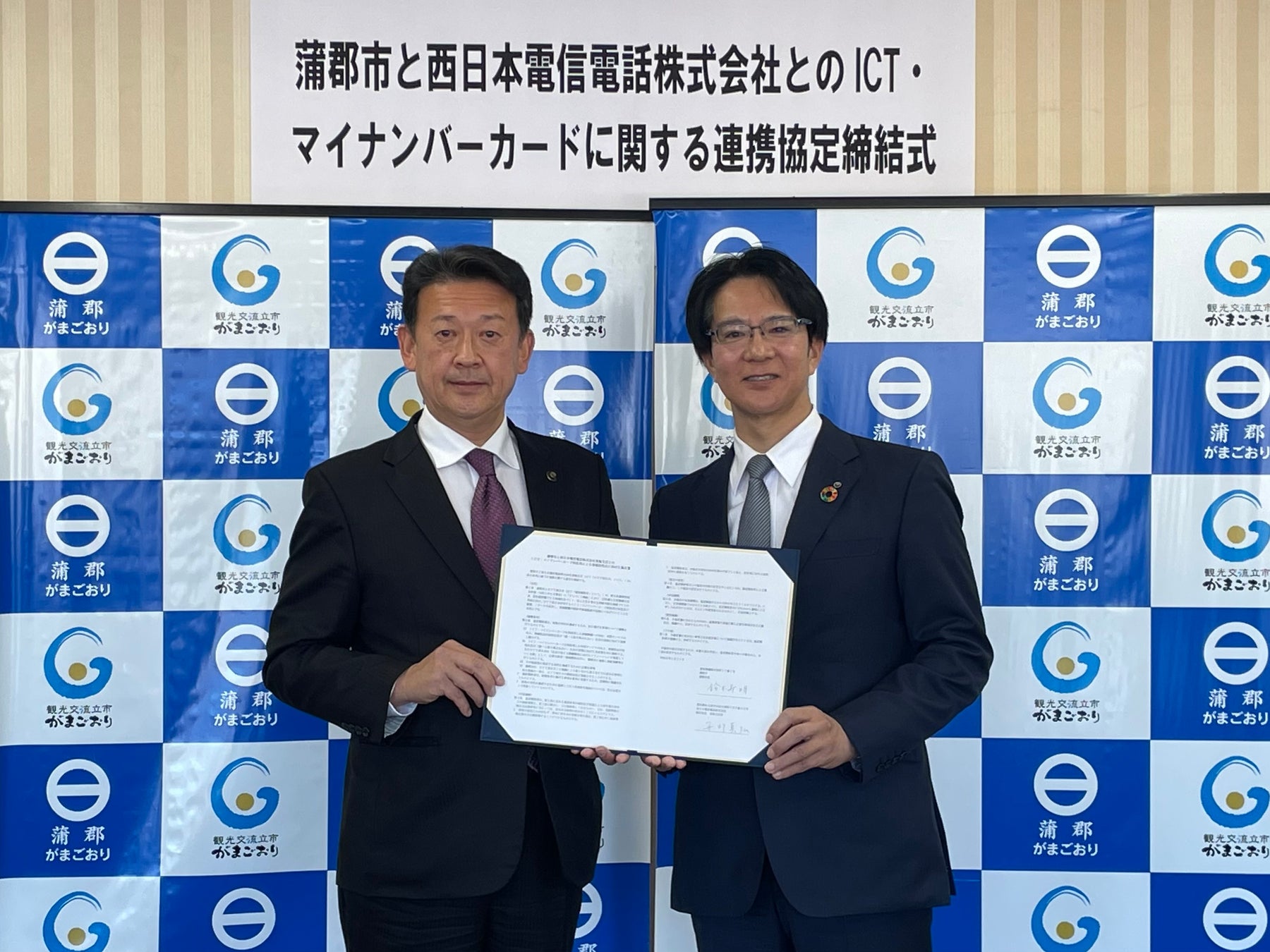 蒲郡市(市長:鈴木 寿明)と西日本電信電話株式会社東海支店(執行役員 東海支店長:安部 真弘、以下「NTT西日本」)は、本日、「ICT・マイナンバーカード活用による地域活性化に向けた協定」を締結いたしました。