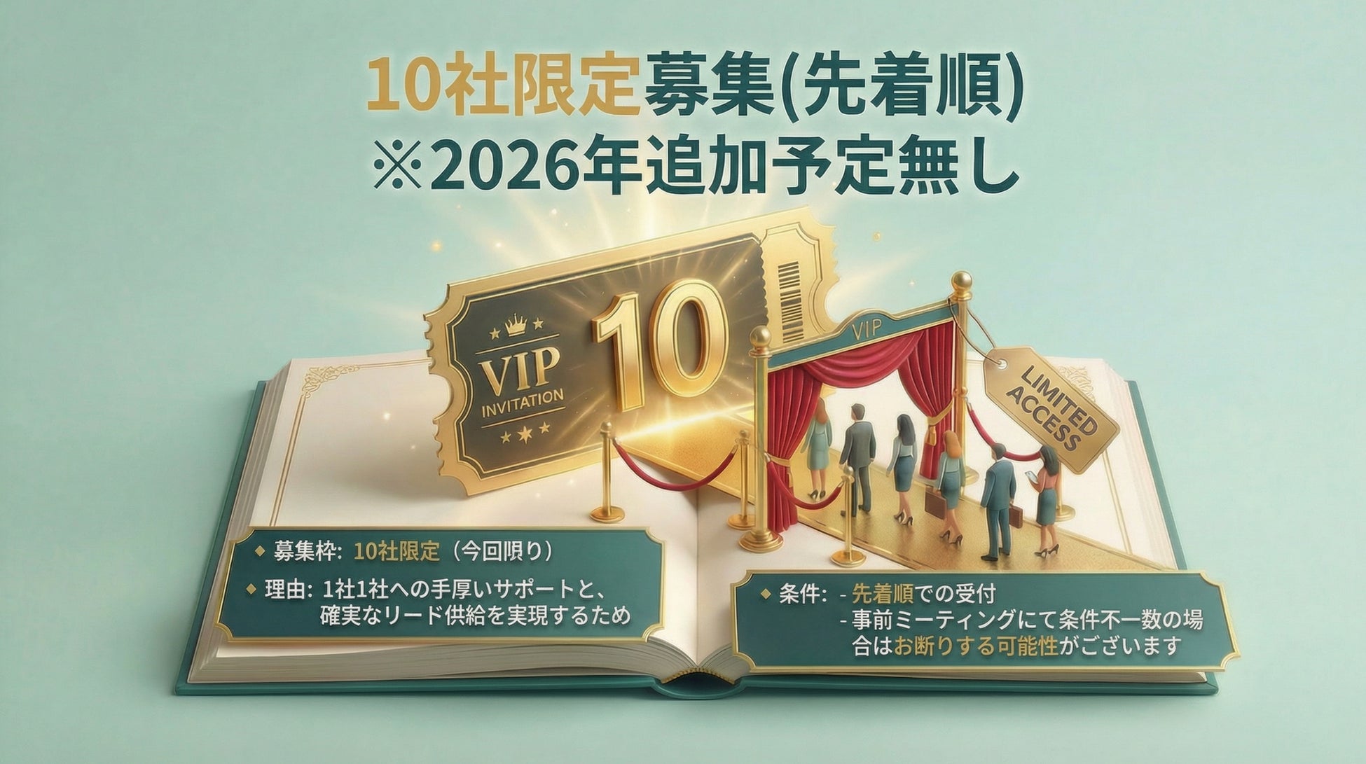 また本サービスは、運用品質と伴走体制の確保のため、先着10社限定(今回限り)での提供とし、2026年の追加募集は予定していません。