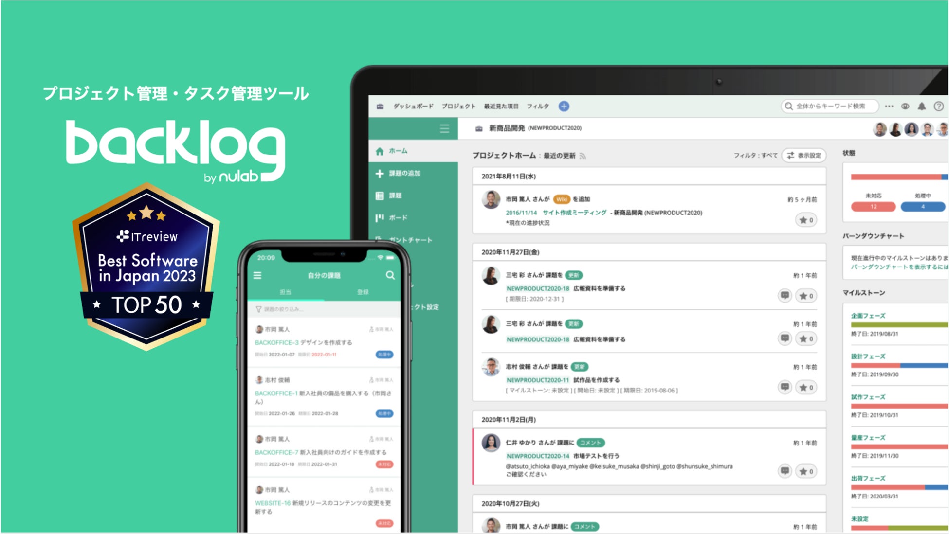 ヌーラボのプロジェクト管理・タスク管理ツールBacklog、「ITreview Best software in Japan 2023」のTOP50に選出