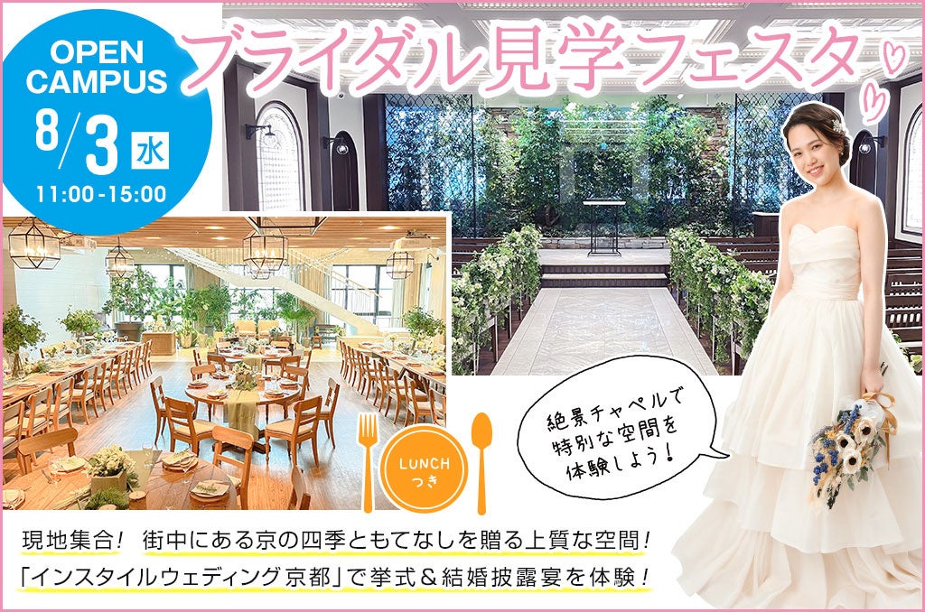 【京都ホテル観光ブライダル専門学校】8月3日(水)インスタイルウェディング京都にて高校生を対象とした「ブライダル見学フェスタ」を開催します