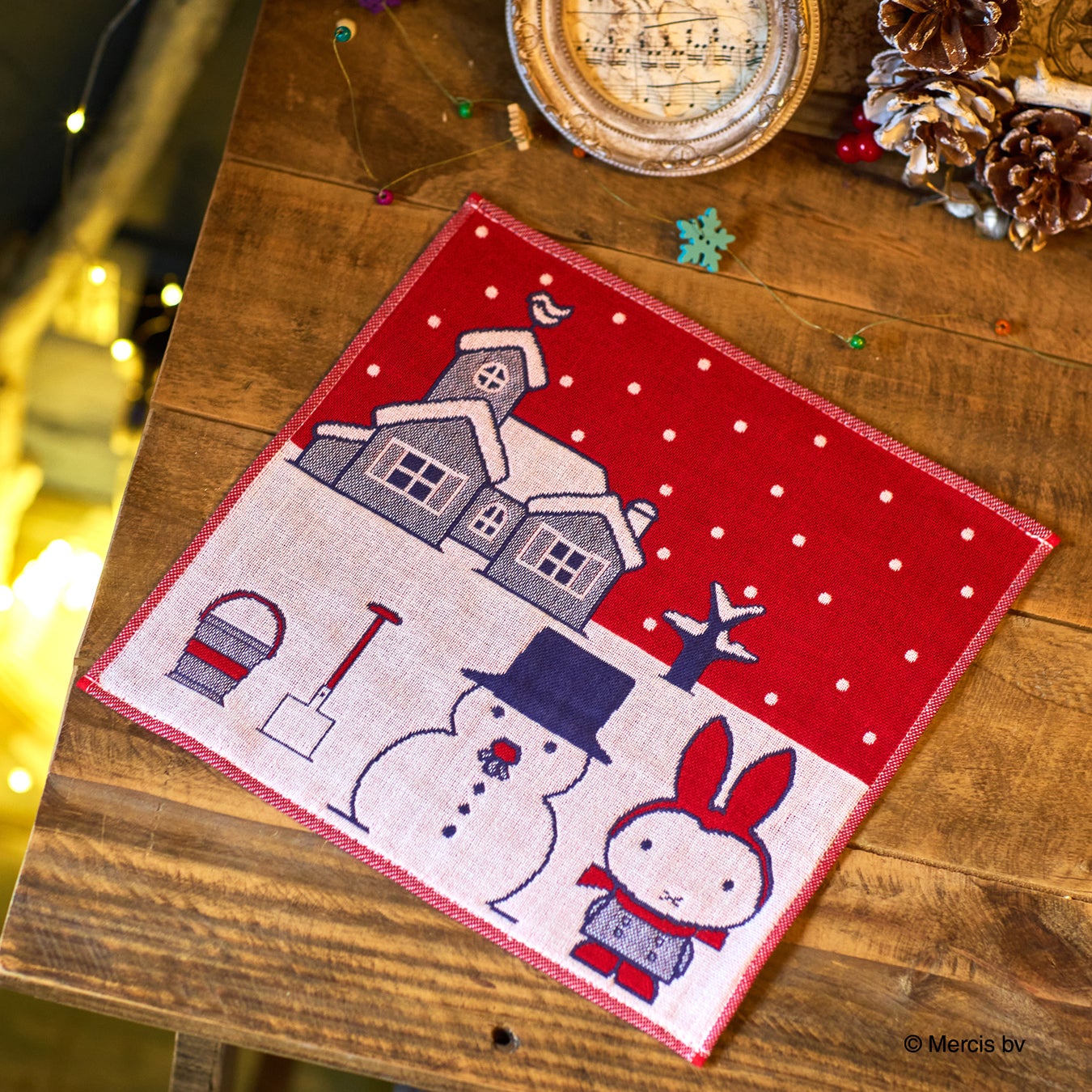 しんしんと降り積もる雪景色。ミッフィーと、絵本に登場するなかまたちをデザインした可愛らしいハンカチ。