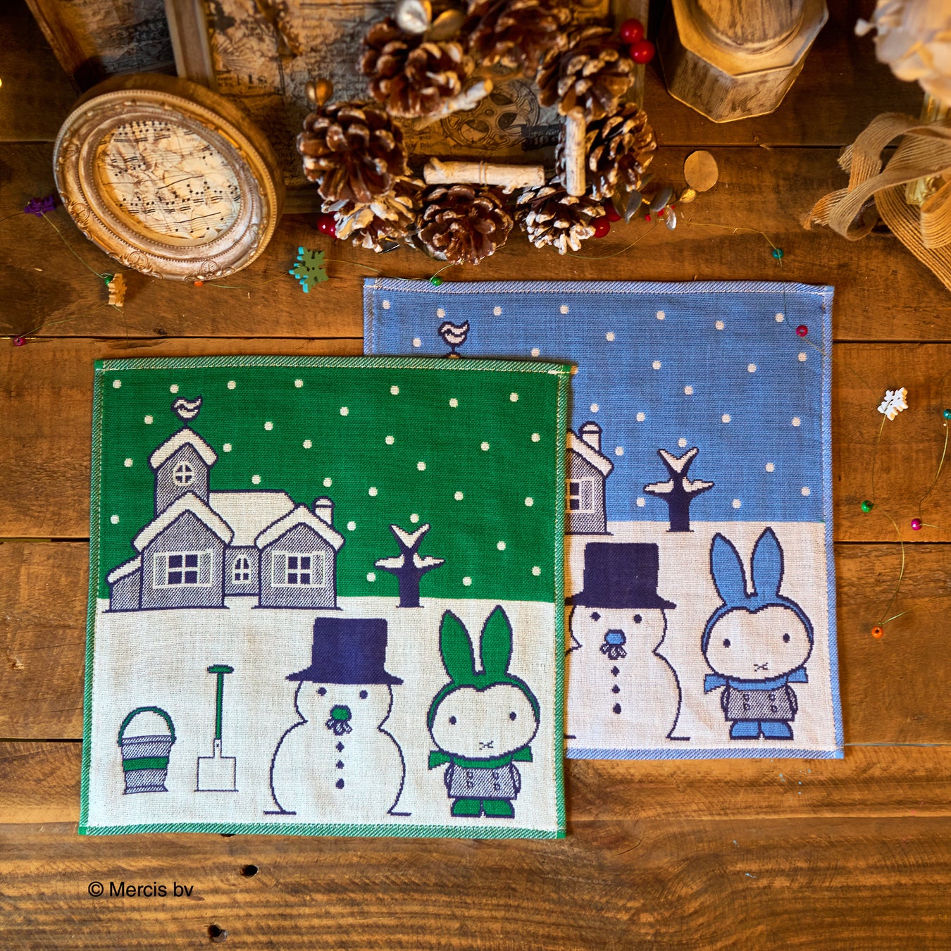 クリスマスツリーや雪だるま、冬の装いのミッフィーがデザインされたハンカチも、気分を盛り上げてくれそうです!