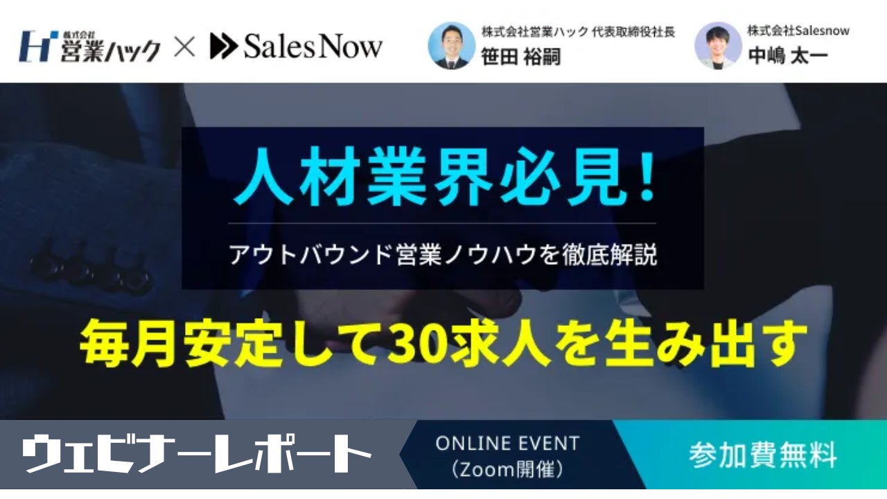 【毎月安定して30求人を生み出す】人材業界のアウトバウンド営業ノウハウを徹底解説!《12/13(水)ウェビナーレポート》