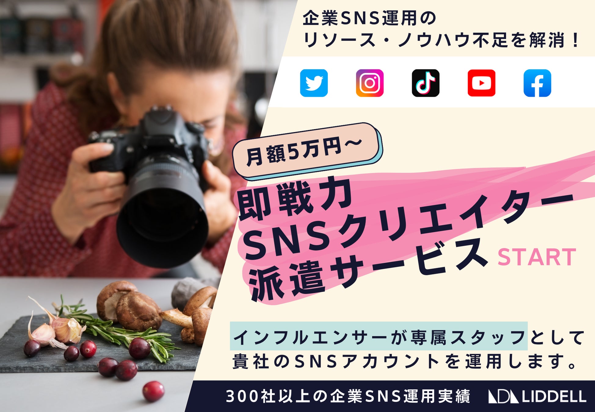 SNS・インフルエンサーマーケティング事業を展開するLIDDELL株式会社 (本社:東京都港区、代表取締役:福田 晃一、以下リデル) は、企業のSNSアカウントを支援する「即戦力SNSクリエイター派遣サービス」を、2022年6月より提供開始いたしました。