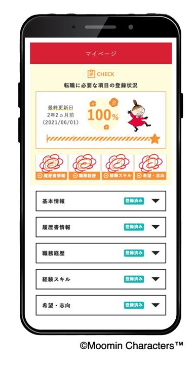 株式会社キャリアデザインセンター(本社:東京都港区、代表取締役社長兼会長:多田弘實、以下CDC)が運営する、正社員で長く働きたい女性のための転職サイト『女の転職type』は11月10日(水)にスマートフォン版マイページ(会員限定ページ)の大幅リニューアルを実施。レジュメの入力率に従って5つの表情のリトルミイが表示される「レジュメ入力率表示エリア」を新設したほか、職務内容の入力を補助する新機能も追加しました。
