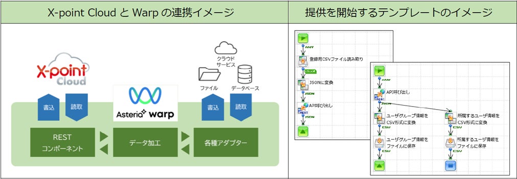 アステリアはエイレッドによるパートナー認定を受けて、X-point CloudとASTERIA Warpをスムーズに連携する専用テンプレートを本日より提供を開始します。このテンプレートにより、エイレッドのワークフローシステムと既存システムがノーコードで連携でき、ワークフロー申請により更新された情報を既存システムに反映する作業の自動化など、システム間での同期や二重入力を削減。X-point Cloud導入企業における、より一層の業務の自動化・効率化や、さらにはDXの推進に貢献してまいります。
