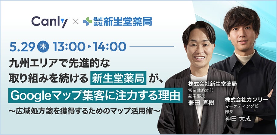 Googleビジネスプロフィール(旧・Googleマイビジネス)、Yahoo!プレイス、Appleマップなどの3大地図媒体、HP、アプリ、SNSなどの店舗集客媒体の一元管理サービス「カンリー店舗集客」の開発・提供を行う株式会社カンリー(所在地:東京都品川区、代表取締役:辰巳 衛,秋山 祐太朗)は2025年5月29日(木)13時より無料セミナー「九州エリアで先進的な取り組みを続ける新生堂薬局が、Googleマップ集客に注力する理由〜広域処方箋を獲得するためのマップ活用術〜」をオンライン開催いたします。