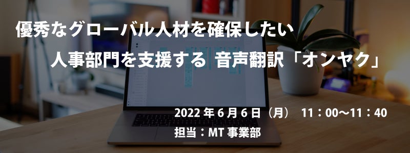 高精度AI自動翻訳の開発・運営を行う株式会社ロゼッタ(本社:東京都千代田区 代表取締役:渡邊 麻呂)は、無料ウェビナー『優秀なグローバル人材を確保したい人事部門を支援する音声翻訳「オンヤク」』を2022年6月6日(月)に開催いたします。