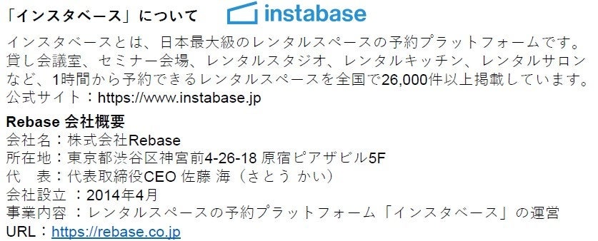2023年3月31日(金)より、「スタジオメイクオーバー武蔵浦和」のスペースの一部をレンタルスペースとして、株式会社Rebaseが展開するレンタルスペースの予約プラットフォーム「インスタベース」から予約・利用が可能になりました。