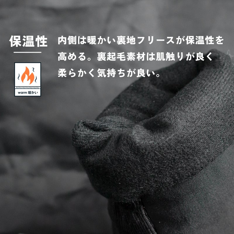 内側は保温性を高める裏起毛素材で肌触りが良く柔らかく気持ち良い。