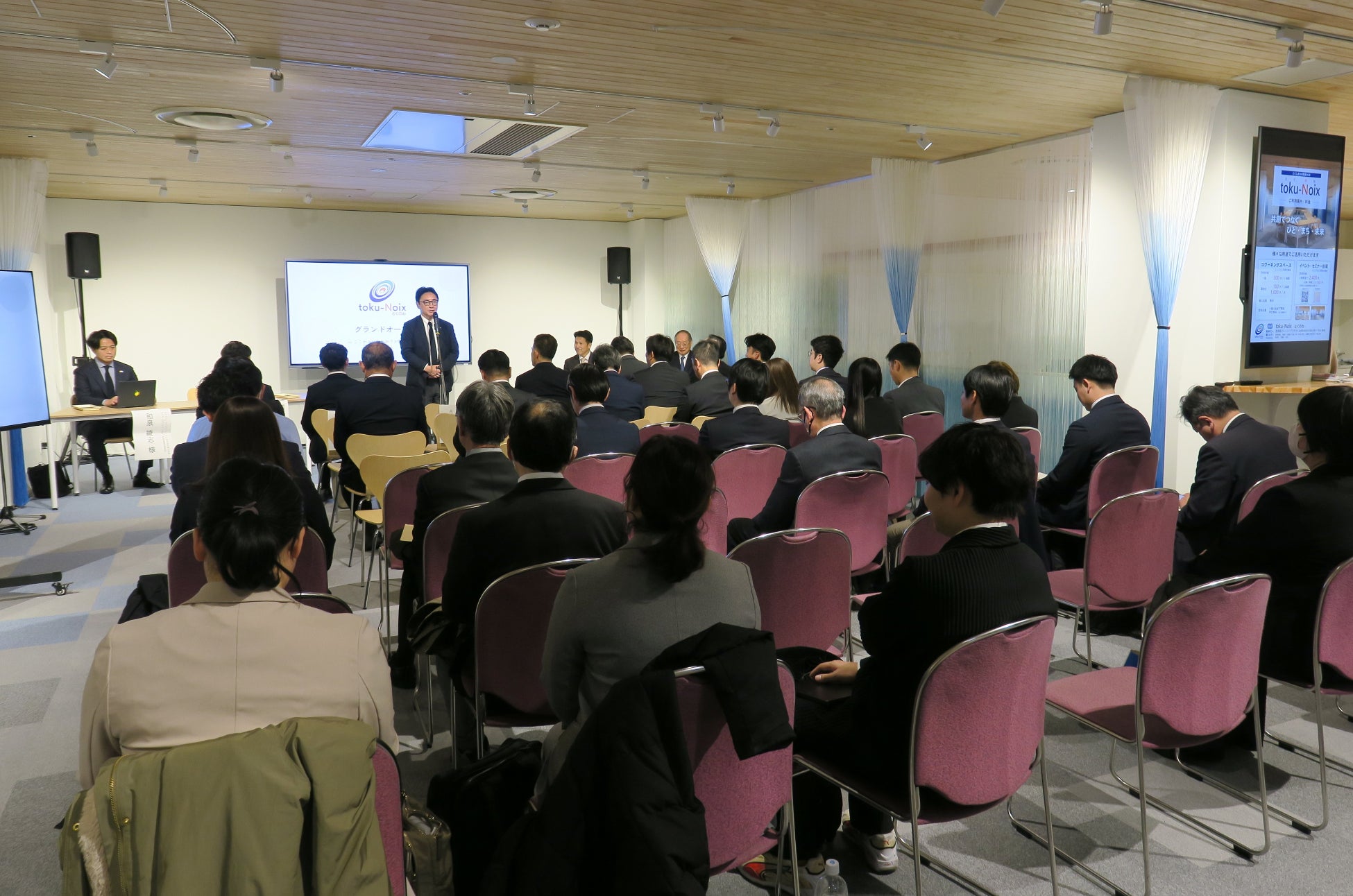 『「新しいあたりまえ」で、新しい世界を創るFORVAL』を理念に掲げ、ESG経営を可視化伴走型で支援する「企業ドクター(次世代経営コンサルタント)集団」の株式会社フォーバル(本社:東京都渋谷区、代表取締役社長:中島 將典、以下「フォーバル」)は、とくしまDX推進HUBに関わる取り組みの一環として、徳島県が設置・主催する官民共創拠点「とくしまDX推進HUB toku‑Noix(とくのわ)」のプレオープン(2025年11月4日)を経て、2026年1月20日に徳島県主催で実施されましたグランドオープンイベントに参加いたしました。
