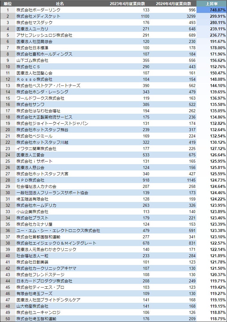 【埼玉県】成長企業ランキングTOP50!/SalesNow DBレポート