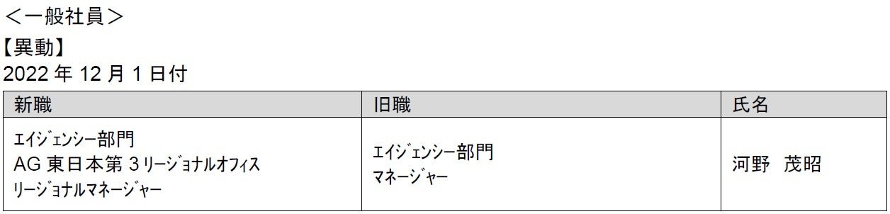 人事異動(一般社員)のお知らせ