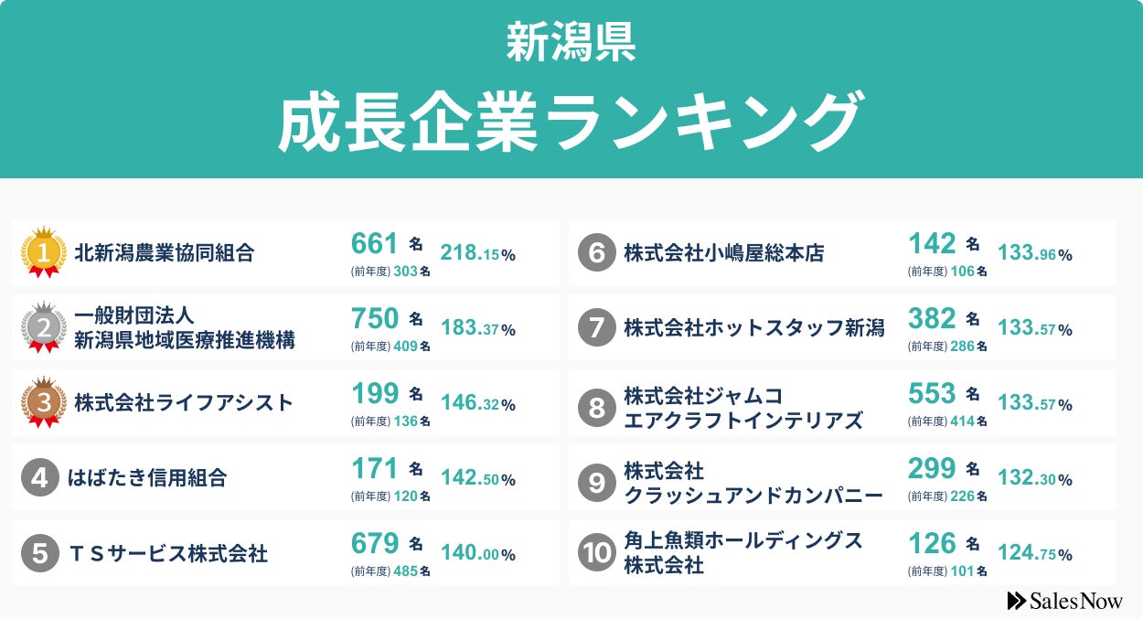 【新潟県】成長企業ランキングTOP50!/SalesNow DBレポート