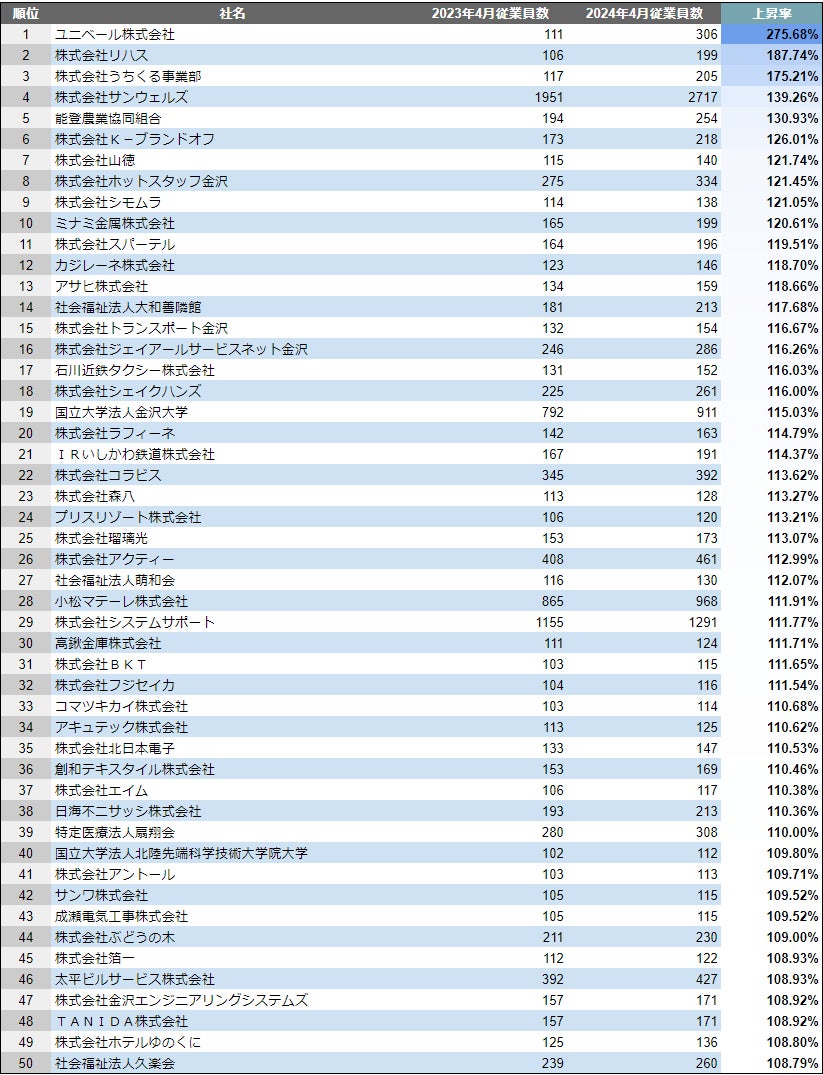 【石川県】成長企業ランキングTOP50!/SalesNow DBレポート