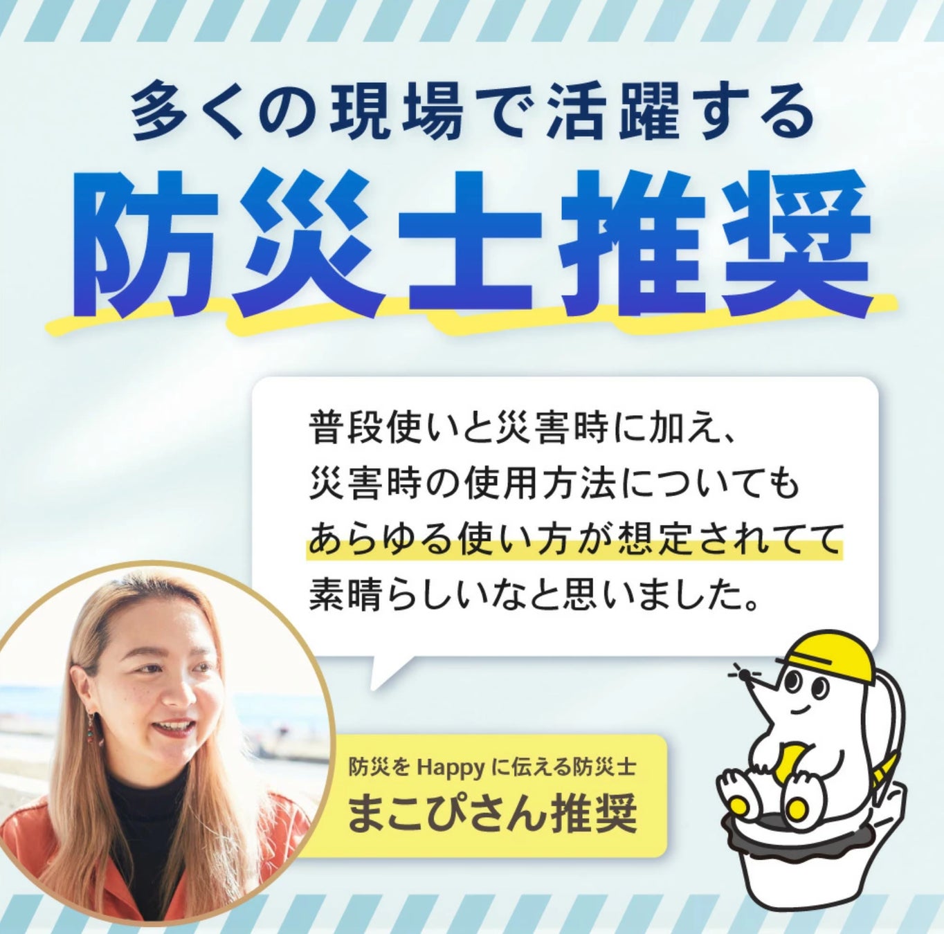 防災士推奨。停電やライフラインが停止した際も衛生的に使用可能。