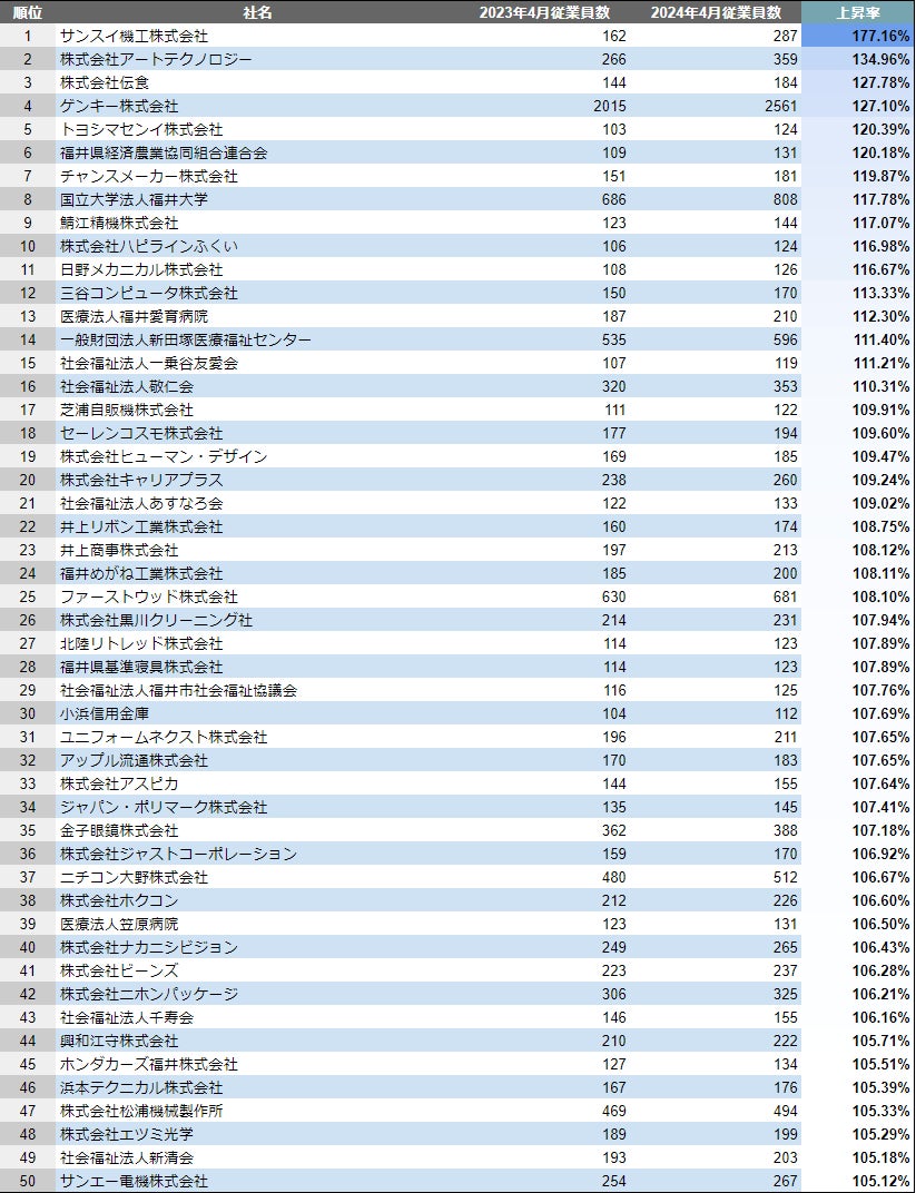 福井県×成長企業ランキングTOP50について