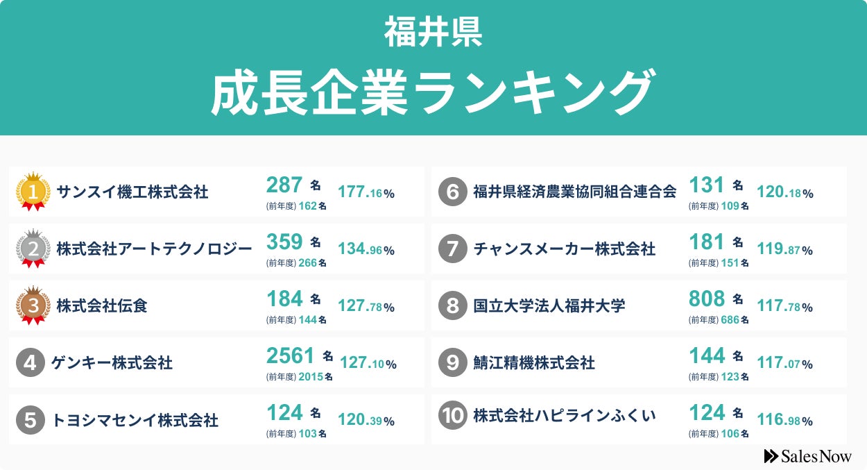 【福井県】成長企業ランキングTOP50!/SalesNow DBレポート