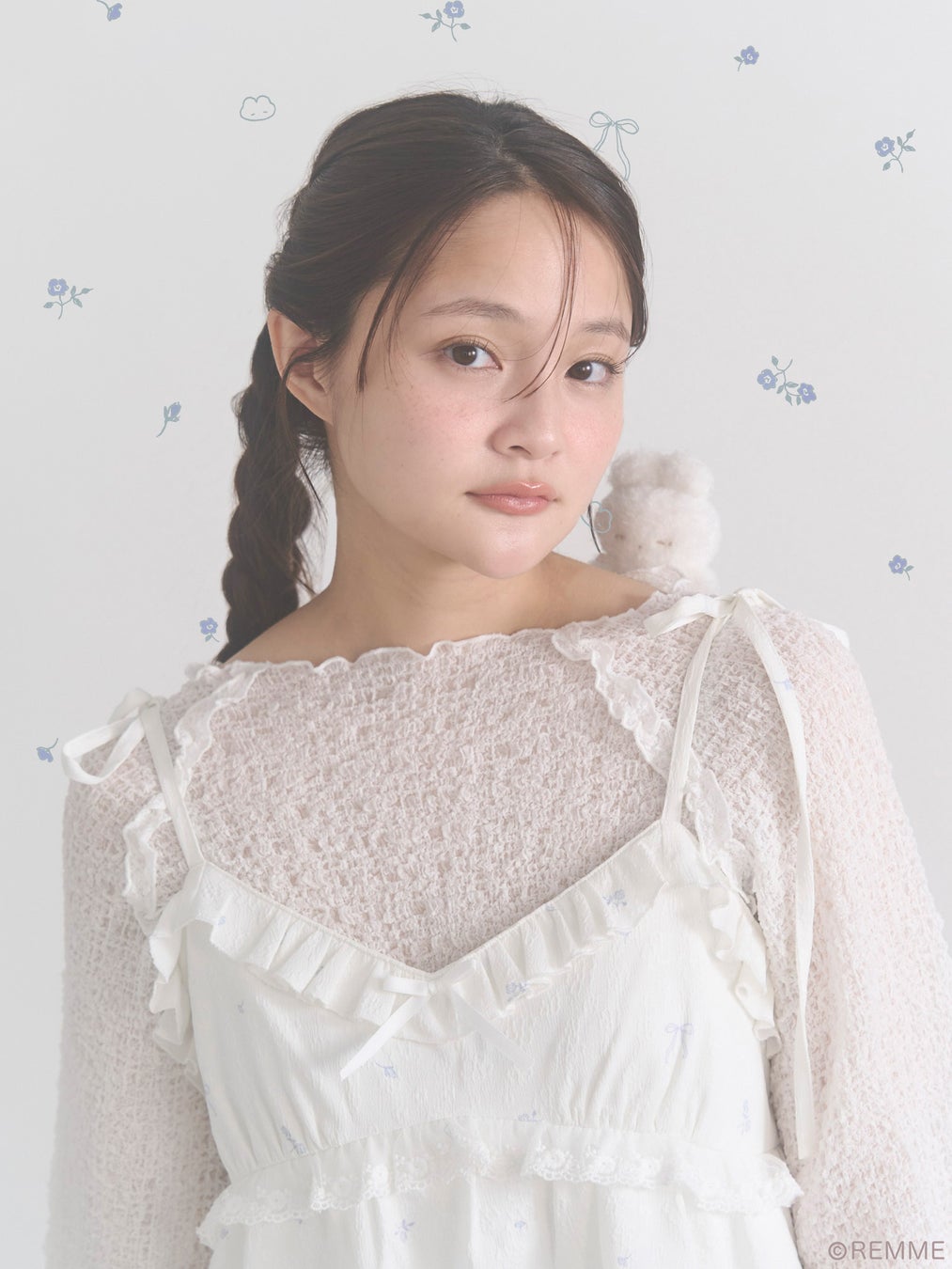 大人気ぬいぐるみ作家REMMEさんが生み出した、今SNSで人気急上昇のキャラクター「うさぎのねむちゃん」が、meery jennyと初のアパレルコラボレーションとして登場。REMMEさんによる描きおろしイラストを載せたワンピースや、肩から恥ずかしそうにねむちゃんが覗きこむシアートップス、本コラボレーション限定の特別にデザインされたぬいぐるみチャームなど、計5型を展開します。