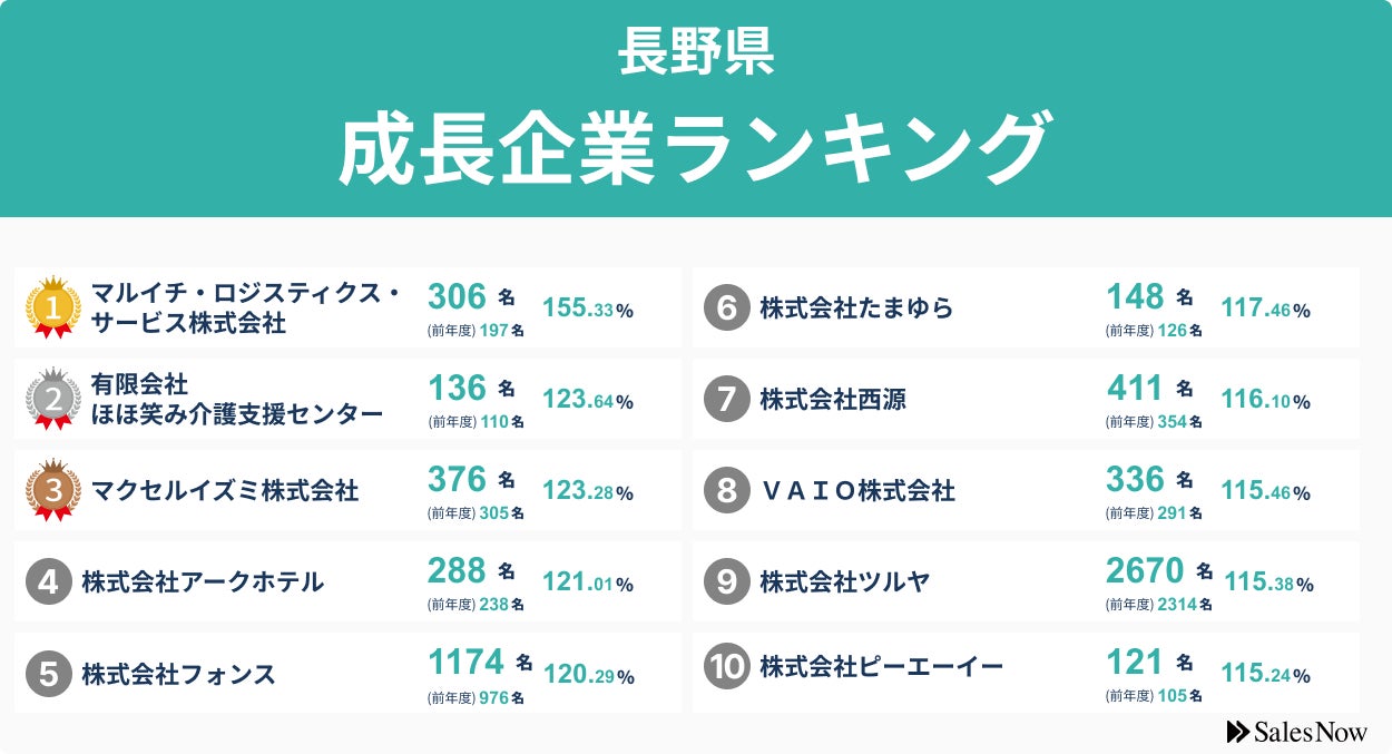 【長野県】成長企業ランキングTOP50!/SalesNow DBレポート