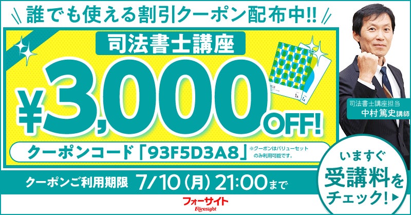 【期間限定】司法書士講座 誰でも使えるクーポン 配布中!