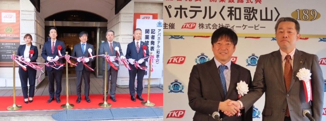 株式会社ティーケーピー(本社:東京都新宿区、代表取締役社長:河野 貴輝、以下TKP)は、アパグループが所有する「アパホテル〈和歌山〉」を取得し、アパホテル株式会社(本社:東京都港区、代表取締役社長:元谷 芙美子、以下アパホテル)とのフランチャイズ契約のもと、2024年11月20日より運営を開始しました。開業に伴い、本日開業披露式典を執り行いました。
