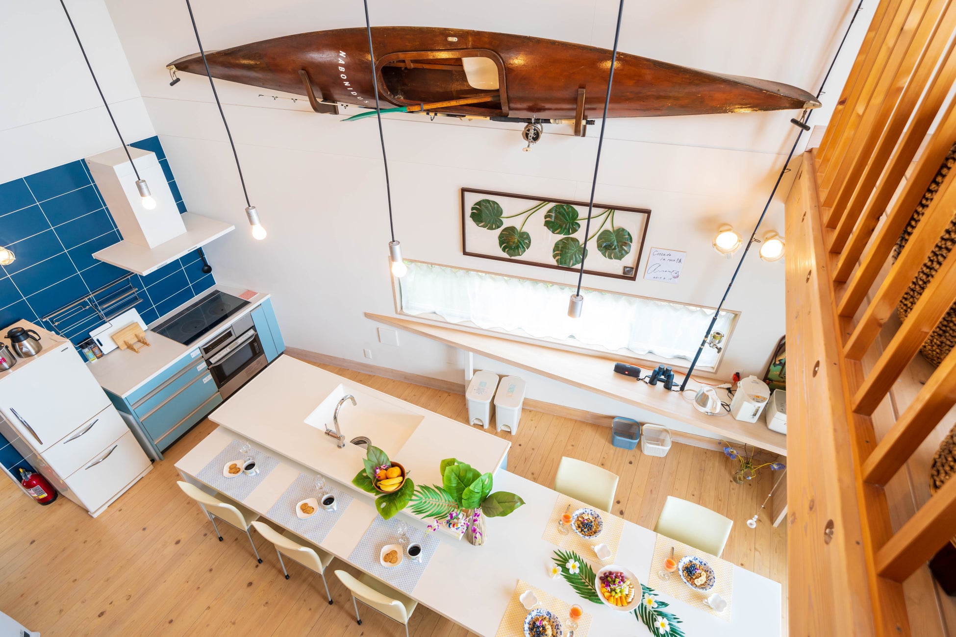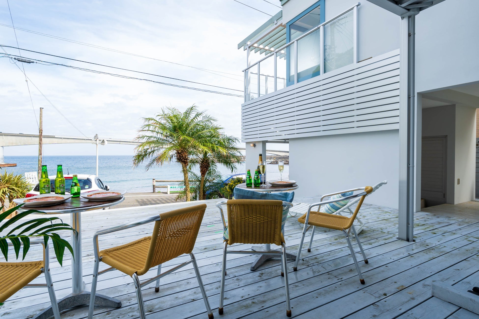 真鶴半島で唯一の砂浜海岸「岩海岸」に佇む一棟貸別荘で、「岩海水浴場」をまるでプライベートビーチのように満喫できる特別空間のオーシャンリゾート。広々としたデッキテラスを備えており、アウトドア気分で汐風を感じながらお食事やご歓談をお楽しみいただけます。
